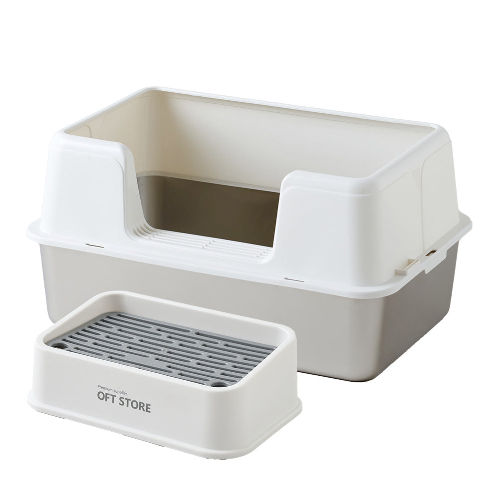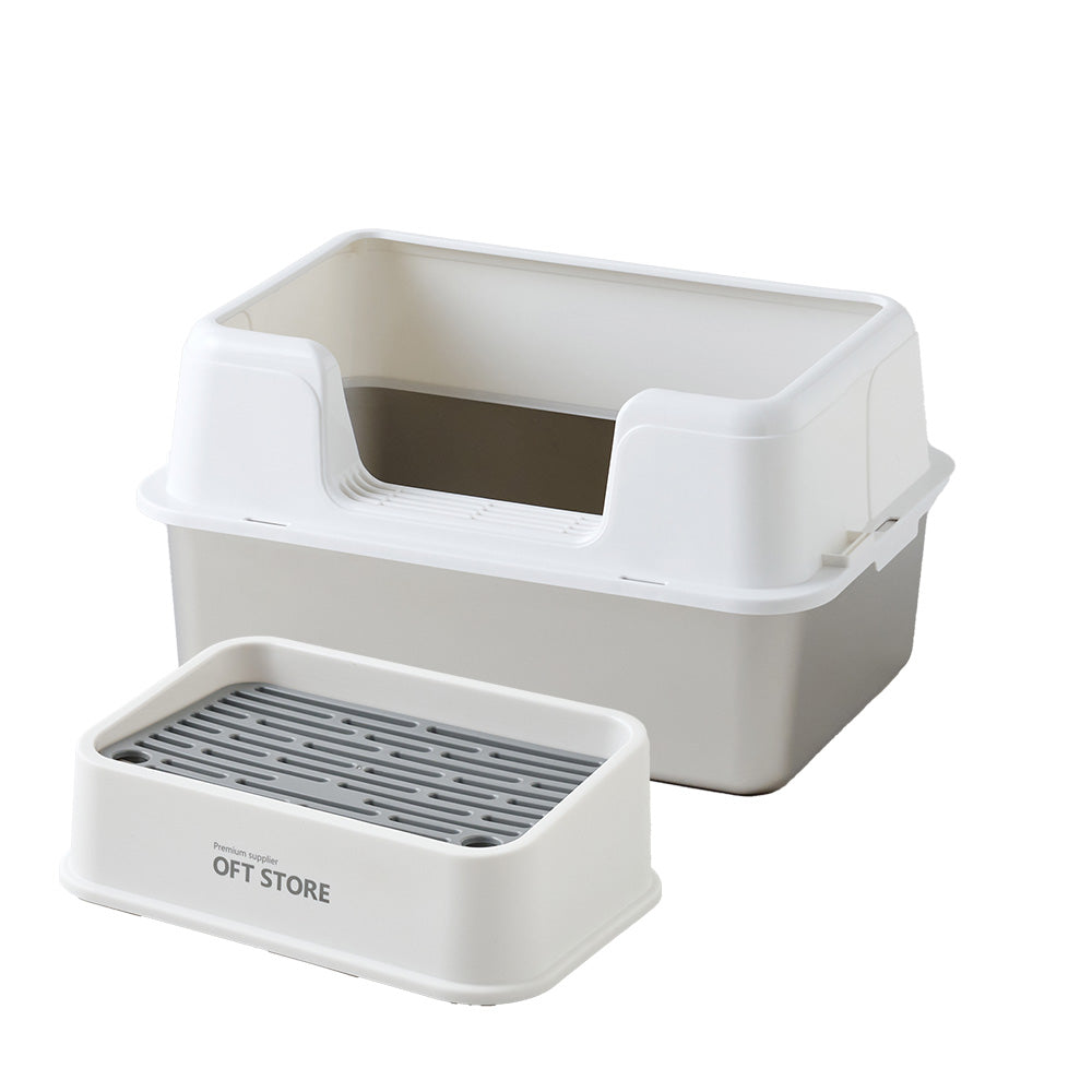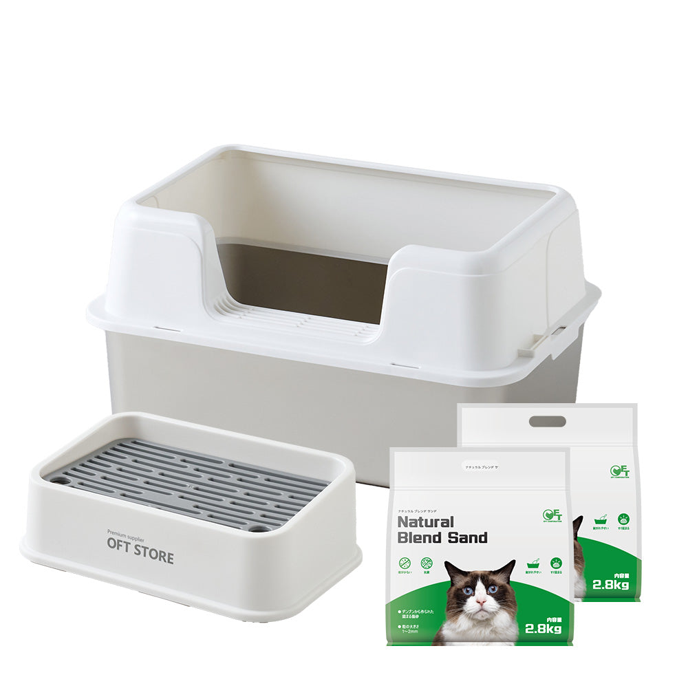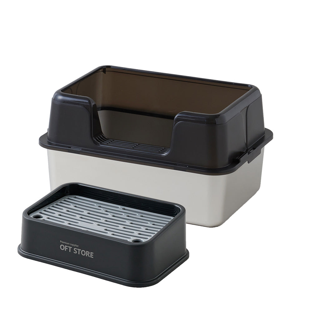 3匹のうち1匹が壁に向けて用を足すので、サイド三方が高くはみだしません。また前のものに比べて猫砂の飛び散りが激減しました。追加購入を検討中です。