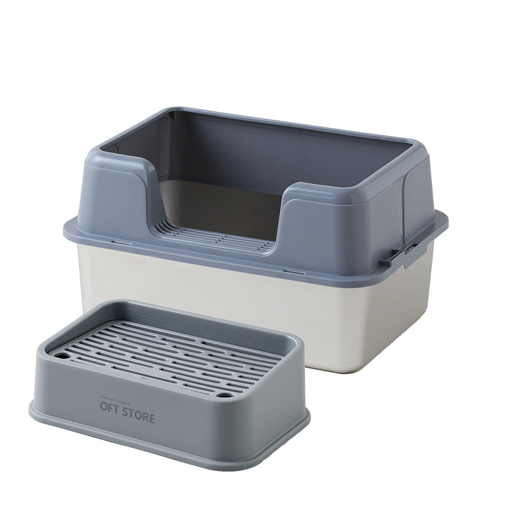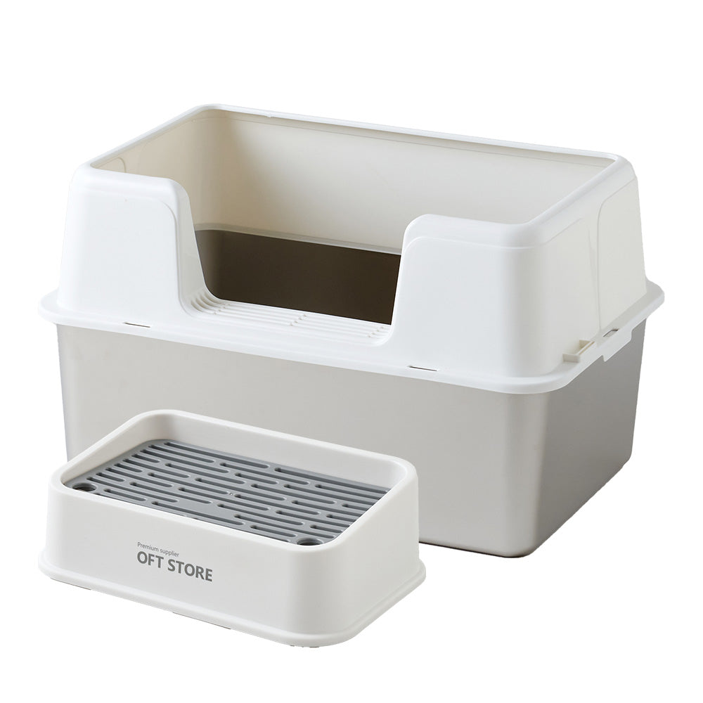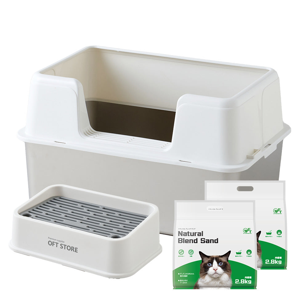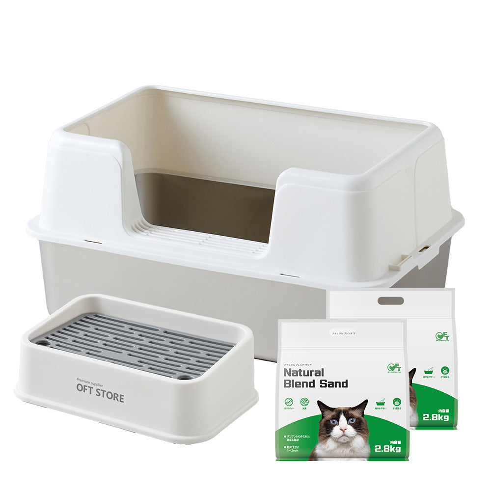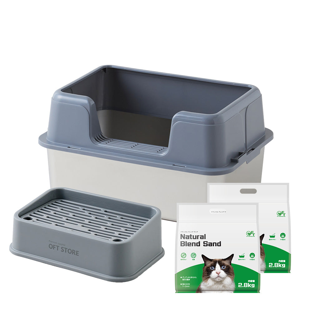 3匹のうち1匹が壁に向けて用を足すので、サイド三方が高くはみだしません。また前のものに比べて猫砂の飛び散りが激減しました。追加購入を検討中です。